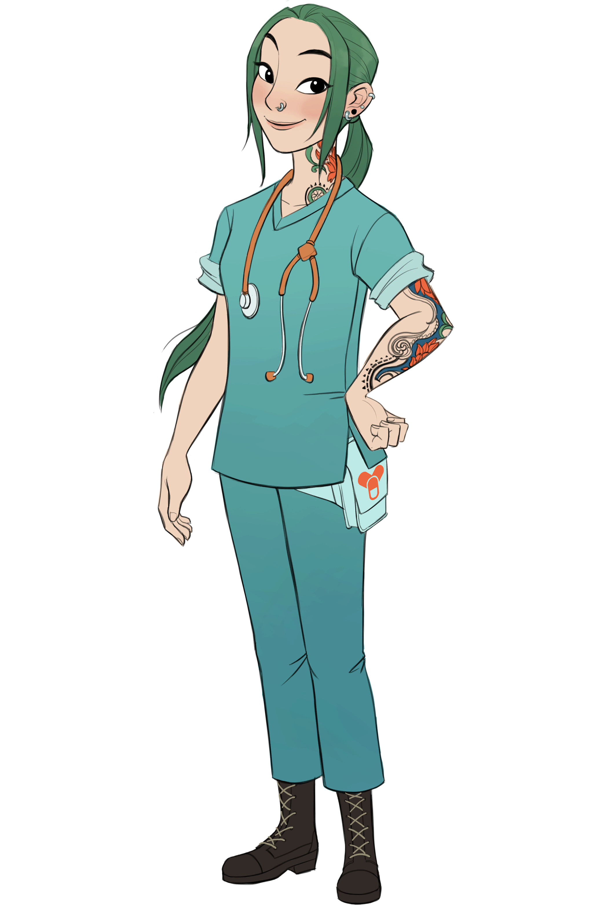 Yuri is not the usual doctor — she spent her 20s and 30s doing doctors without borders with little to no pay. Presumably why she has no decent savings and decided to settle in a cheap area like Starlet Town, a flight away from her hometown, Tosaka. In her free time, she is often hanging out, playing chess or pool at [[Beach Shack]] and the [[Tavern]]; She also likes tattoos, piercings, pastel hair, eating out and playing pool. She is close with her roommate [[Millie]] and fellow doctor, [[Charles]]. | |||