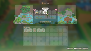 Fish pond is a place to cultivate fish. Player must put at least 2 fish to be able to multiply. New fish will appear after 2 days, except for legendary fish that takes 4 days to multiply. The more fish player put in the pond, the more fish it will produce after 2 days. Fish quality in the pond will determine the next generation's quality.